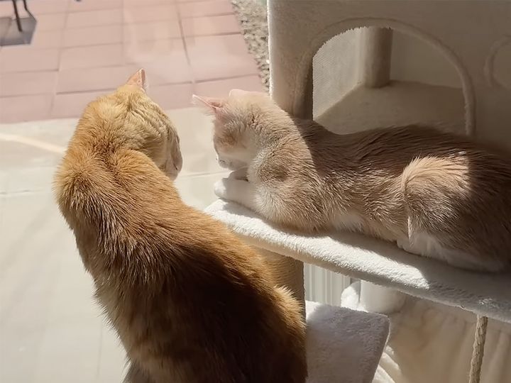 出会って1週間で大親友! 茶トラコンビの仲良しっぷりが微笑ましい♡