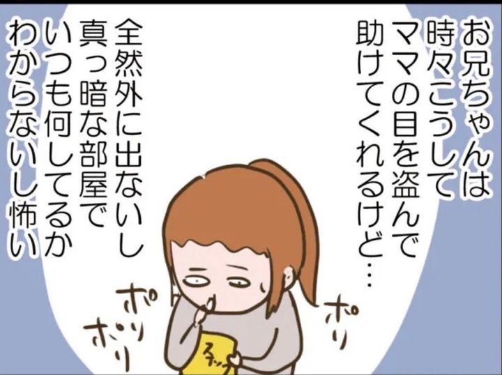 マルコさんが人から聞いた話にフィクションを加えて漫画化した「怖すぎる隣人」。兄の存在を話してしまったサツキちゃんは、「ママに怒られる!」と恐怖でガタガタ震えていた。