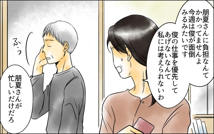 昔は夫も私のことを大事にしてくれ、そして息子も私の気持ちを最優先してくれました。だけれども今は、夫は私の気持ちなど聞いてくれず、息子は嫁を優先してばかり…。朋夏さんは仕事ばかりで家庭を大事にせず、しかも子どもすらもできないまま。なぜそんな自己中心的な人が大事にされるのか、私と朋夏さんは何が違うのでしょうか。