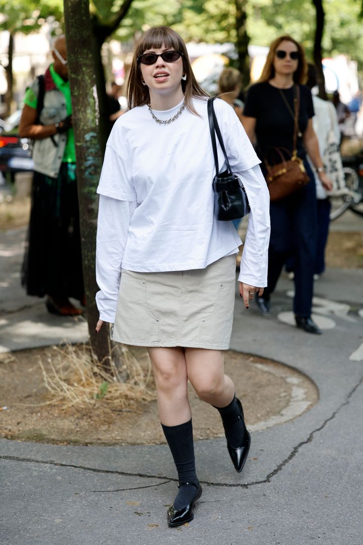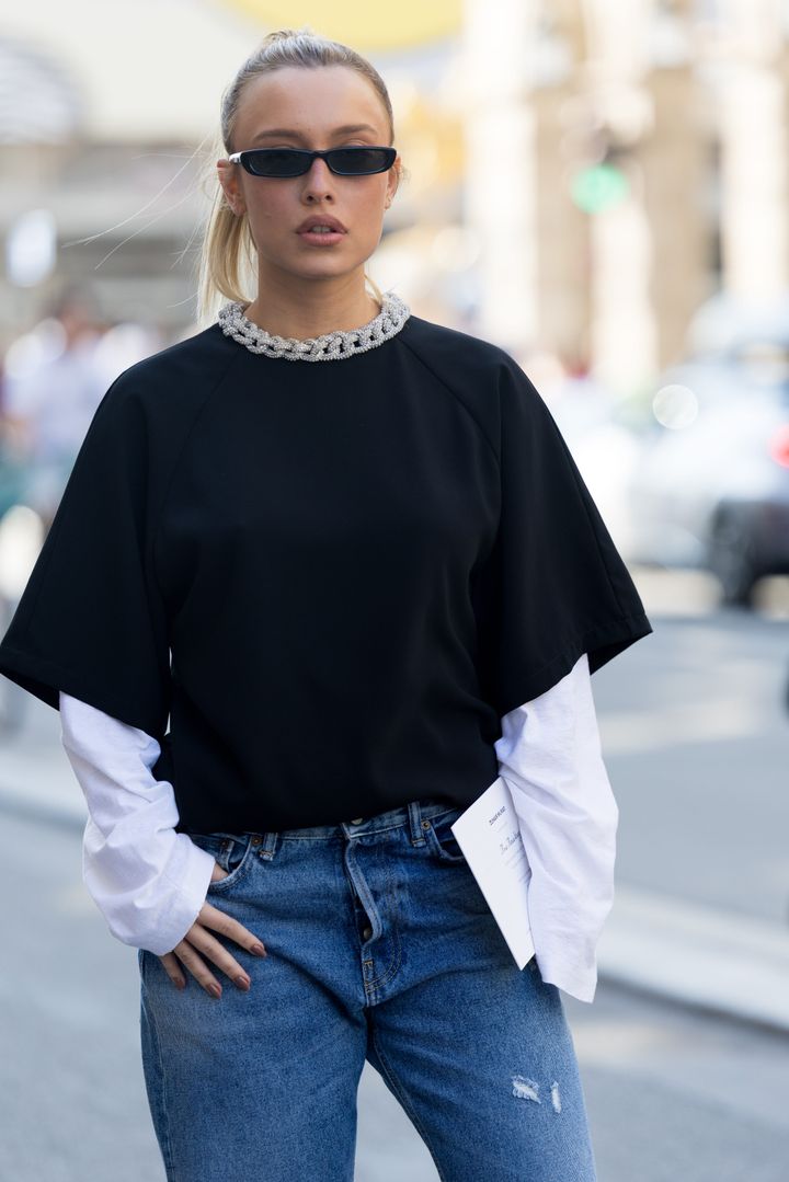 一見シンプルすぎるように聞こえるかもしれないが、このスタイリング・テクニックには魔法のような効果がある。ただ2枚のトップスを重ねるだけで、何の変哲もない普段着が、エッジの効いた「意図のあるコーディネート」に瞬時に変わるのだ。ファッションウィークのストリートスナップや、Instagram、TikTokのフィードでこのスタイルが溢れているのを見れば、このトレンドが本物であることは間違いない。
