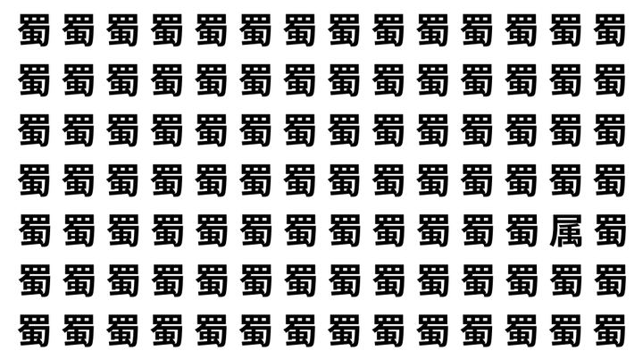 たくさんの「蜀」の中に、よく似た別の漢字が1文字だけ隠れています。