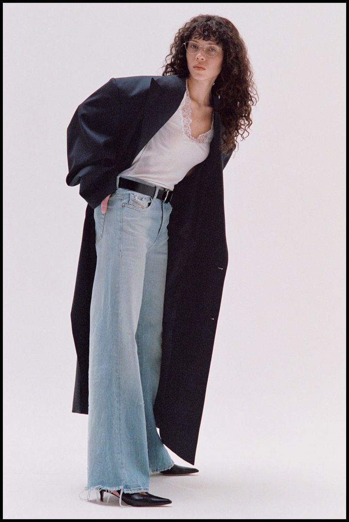 ベルトが生む黄金比でタイムレスな美脚をストレートはベルト使いでウエストを締めるのが肝。オン・オフで印象が劇的に変わるはず。パンツ¥63,800/ディーゼル(ディーゼル ジャパン) コート¥297,000/ウェルダン(サカス ピーアール) トップス¥38,500/カナコ サカイ メガネ¥47,300/アイヴァン(アイヴァン 東京ギャラリー) ベルト¥38,500/イザベル マラン(イザベル マラン 青山店) シューズ¥69,300/ぺリーコ(アマン) LOCAL ARTIST