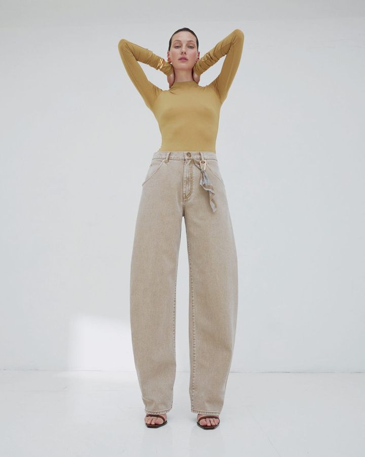 スーパーワイドなフォルムが斬新。ウエストをマークするデザインで、シンプルなトップスと合わせるだけでも決まる。デニム¥313,500/アライア(リシュモン ジャパン アライア)