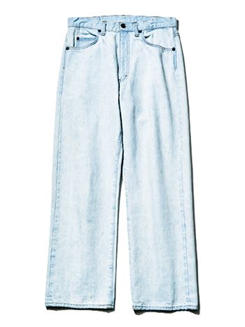 ライトブルーストレートデニムパンツ/ボニーウーブン(クローバーズ) 淡い色ながら、もたつきにくいノンストレッチのストレートフォルム。清潔感を覚える色みのおかげで、いつもちぐはぐしていたキレイめな服にも難なく対応。