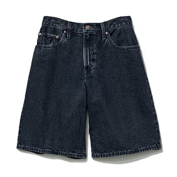 黒ハーフデニムパンツ/Levi’s®(リーバイ・ストラウス ジャパン) リラックス感のある幅広ワイドで人気の「BAGGY DAD」をハーフ丈にアレンジ。ブルーデニムだと子どもっぽく見える丈感も黒ならシャープに好転しグッと穿きやすく。綿100%。