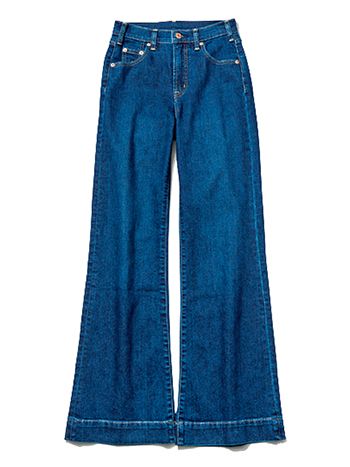 インディゴフレアデニムパンツ(一部店舗限定)/Gap NEXTデニムとして注目の細身フレア。脚長・細見えがかなうだけでなく、レトロな形が装いに趣も加算。キレイにもカジュアルにも振りやすい、色あせ感のない濃ブルー。