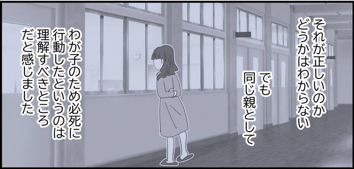 私はシオリちゃん親子が孤立しないか心配でシオリちゃんに連絡すると、シオリちゃんが学校にいることでマホちゃんだけではなく、他のママたちも安心できていることを知ったのです。