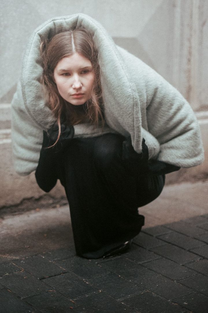 シルエットを包み込み、ぼかし、あるいは歪めることで、重ね着は感情的かつ象徴的な逃げ場を生み出し、都市や社会への露出に対して、どの程度身体をさらすかを調整することを可能にします。