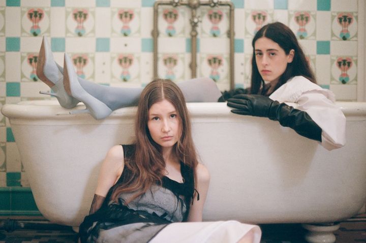 left - each top by ENAUT, vintage skirt and necklace stylist’s ownright - dress by ENAUT, blouse by & OTHER STORIES, socks and bracelet stylist’s own