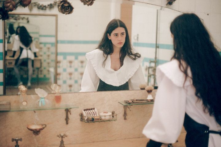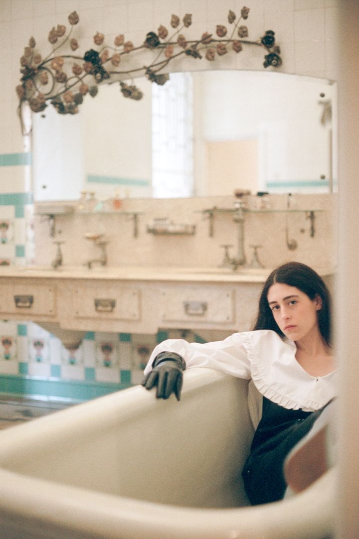 each top by ENAUT, vintage skirt, socks, shoes and necklace stylist’s own