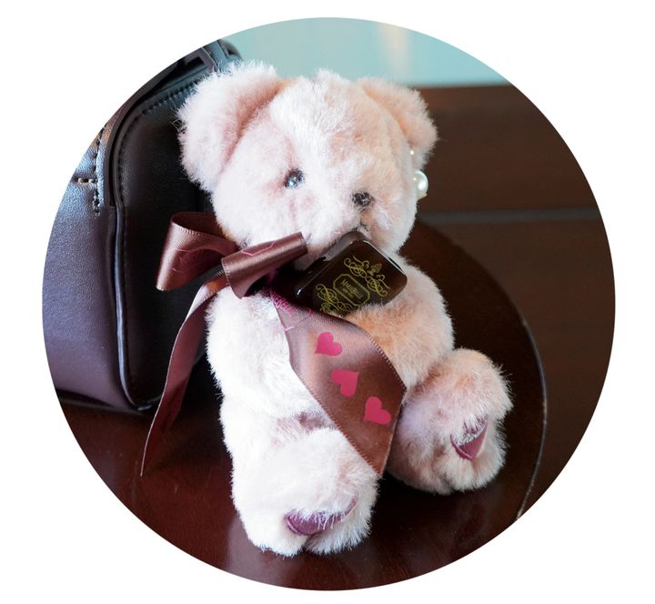 NYで大人気のチョコブランドMARIEBELLEとのコラボ。チョコを持っているクマと足元の♡が可愛い