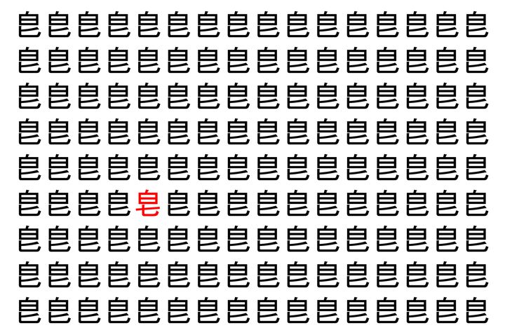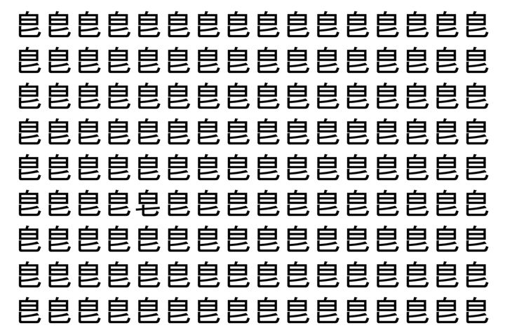 2. 【脳トレ】「皀」の中に紛れて1つ違う文字がある!?あなたは何秒で探し出せるかな??【違う文字を探せ!】