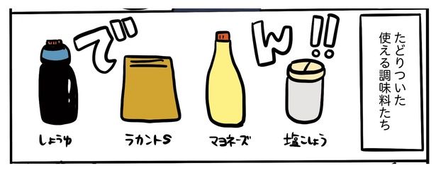 使えなくなって一番困った調味料はめんつゆだった。ほかにも使えなくなって困る調味料はたくさんあったが、家族が食べるものはいつもの味に近づけられるよう、照り焼きなどは醤油とみりんとお酒を駆使して調理していたという。反対にマヨネーズはほぼ糖質がないため糖質制限者にとって神調味料だという。その代わりカロリーが高いため使いすぎには注意が必要だと著者は語る。