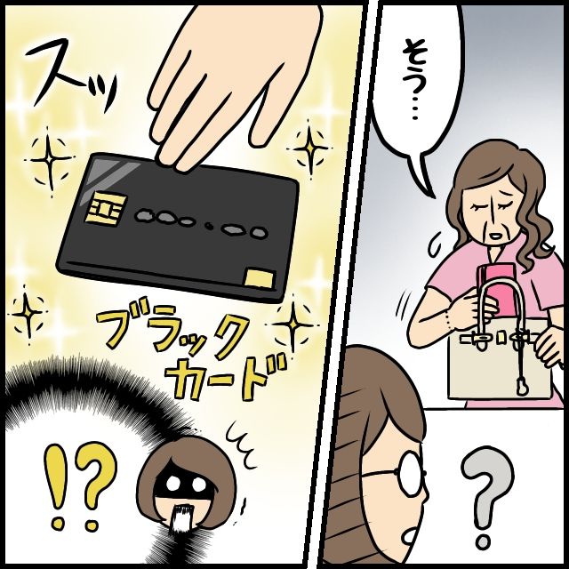 結婚後も働くと伝えた嫁に義母が差し出してきたのは、まさかのブラックカード。普段の生活ではまずお目にかかれない代物です。息子の嫁にブラックカードを渡してしまうあたり、スケールが違いますね。