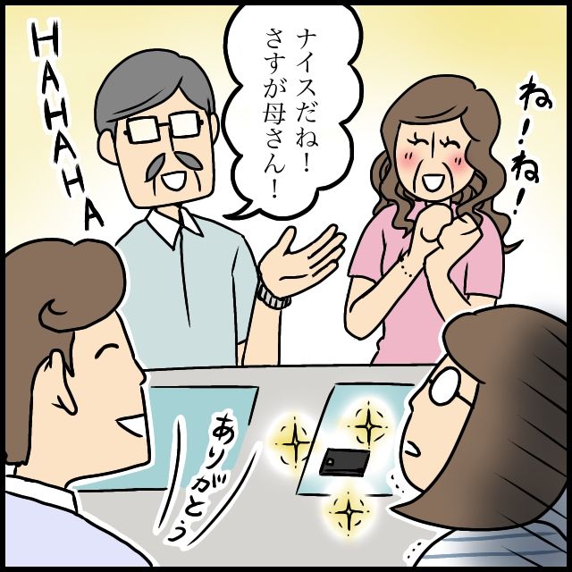 誰かツッコミを・・・!そう思って周りを見渡しても、義父も夫もまさかの乗り気。義父は「ナイスだね!さすが母さん!」と笑い、夫まで「ありがとう」なんて感謝し始めて・・・。違う、そうじゃないから!