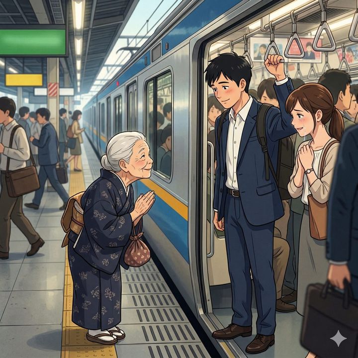 おばあさんは何度も頭を下げながら、ようやくホームへと降りていきました。その背中を見送った男性は、何事もなかったかのように再び吊り革を掴みます。