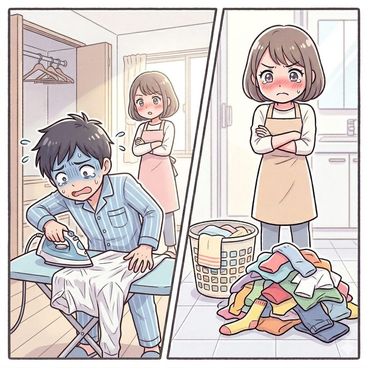 結局、彼はシワだらけのシャツに必死でアイロンをかけ、半泣きの状態で家を飛び出していきました。