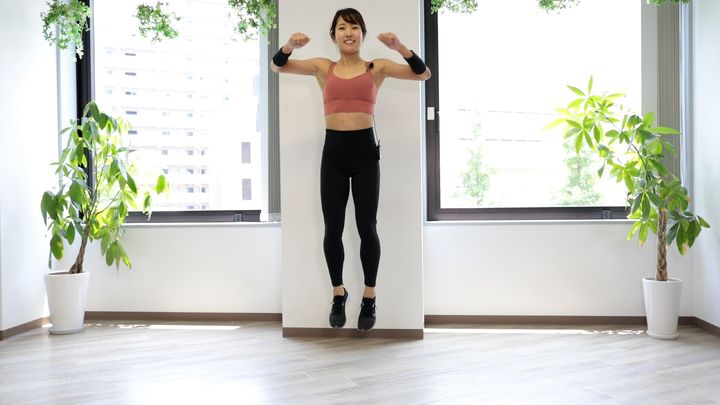 ジャンプやスクワットを組み合わせた下半身強化メニュー。基礎代謝アップと脂肪燃焼の両方にアプローチします。