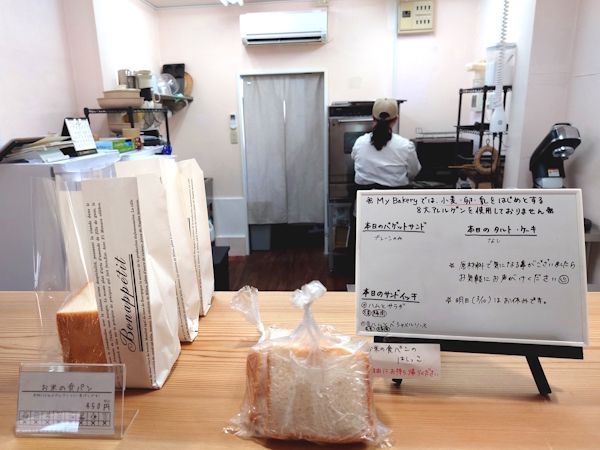 店名の「My Bakery」は、米(マイ)と自分専用(my)の意味をかけた名前。 使用するのは奈良県産米粉を中心とした素材で、豆乳バターや乳不使用チョコレート、さとうきび粗糖など、アレルゲンの少ない素材を選んで作られています。