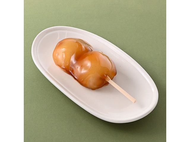 大きなこしあん入りのみたらし団子です。わらび粉を使用することでつるもち食感に仕上げています。