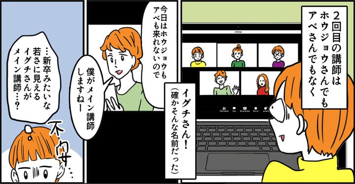 イグチさんはまるで大学生のような、あどけない雰囲気の若い講師でした。講義はまたもやテキストを読み上げるだけ。受講者のオニヅカさんが「終わった後に参加者同士でチャットしたい」と提案してくれて、私たちはチャット上で自己紹介しあいました。