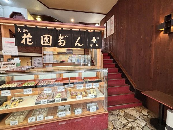 お店は2階建ての造り。入店後すぐに和菓子の販売コーナーが目に飛び込みます。