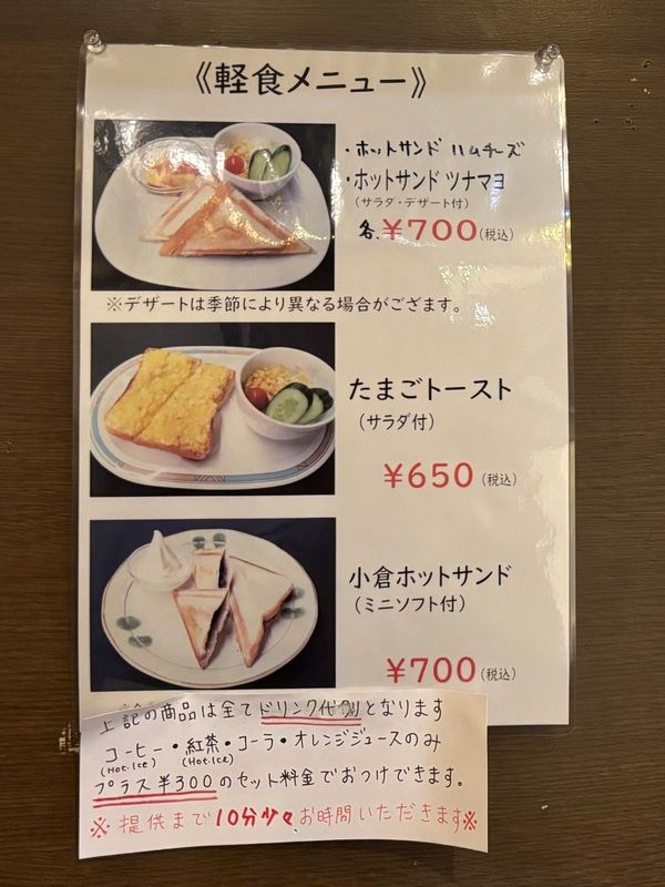 モーニングと軽食メニュー