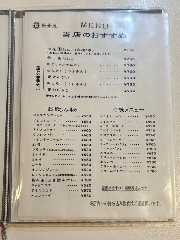 和スイーツとドリンクメニュー