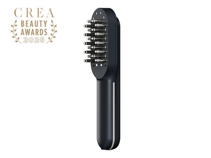 ヘアケア機能も備えたブラシ型美顔器。髪の水分量を増やし、トリートメントの浸透効果もアップ。