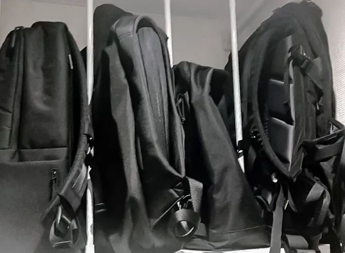 一つひとつのリュックをつっぱり棒で仕切り、倒れないようにしてあるので、1つ取り出しても『なだれ』が起きることもありません。戻す時もサッと入れるだけでOK。