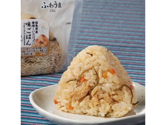 福島県産の「愛情しいたけ」と、人参、油揚げを醤油などで甘辛く炒め煮した具材に、昆布などと混ぜ込んで仕立てた、優しい風味の味ごはんです。 ※新潟県の一部では取り扱いがございません。 東北で販売東北で販売