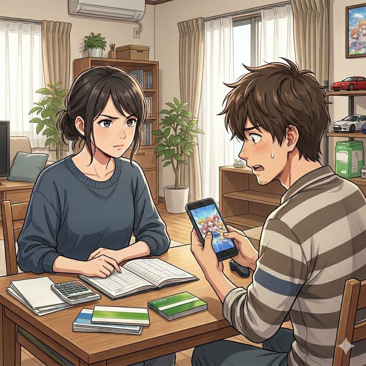 「また贅沢したの?お金使いすぎだよ。僕が将来のために必死に働いているのに、無駄遣いは控えてくれないかな」