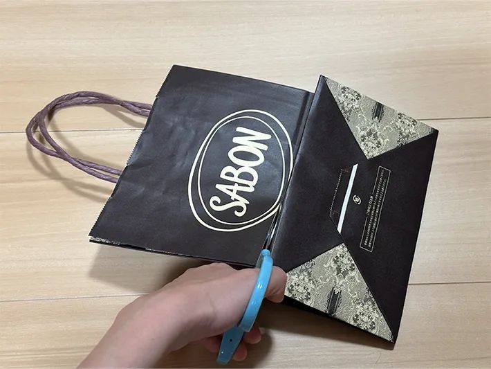 まず、好きな紙袋を折り畳んだ状態で置きましょう。底面が上にくるよう置くのがポイントです。