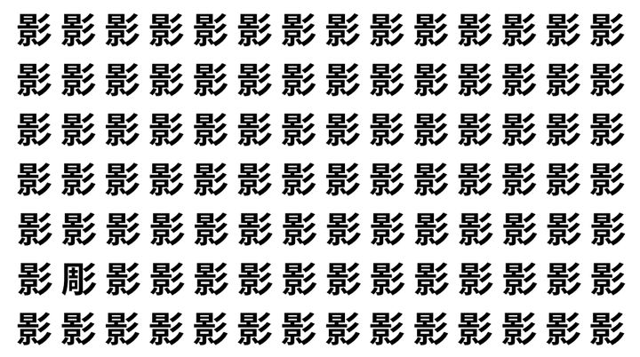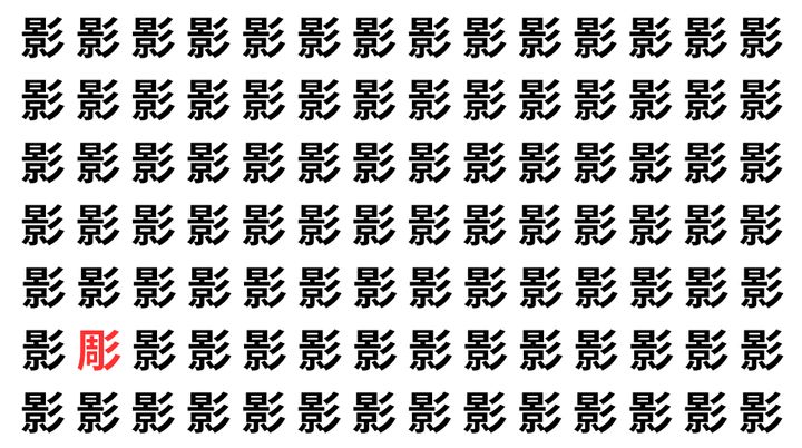 たくさんの「影」の中に、よく似た別の漢字が1文字だけ隠れています。