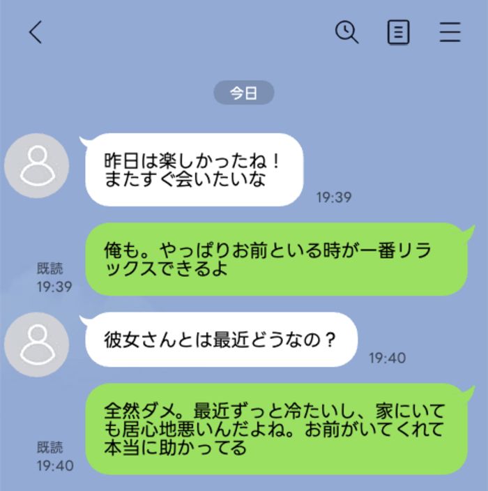彼「全然ダメ。最近ずっと冷たいし、家にいても居心地悪いんだよね。お前がいてくれて本当に助かってる」