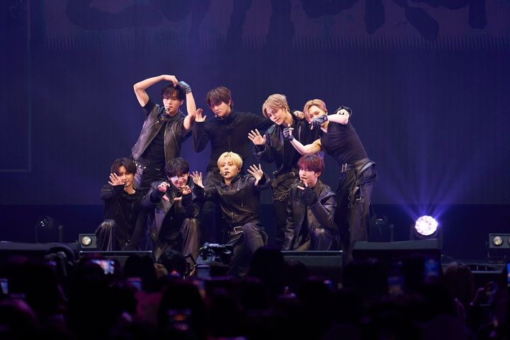 黒のステージ衣装に身を包んだ8人が姿を現すと、会場の熱気は一気に上昇。MC古家正亨の呼び込みで登場したメンバーたちは、初めての日本イベントらしい緊張をにじませながらも、満面の笑顔でALLYZに手を振った。