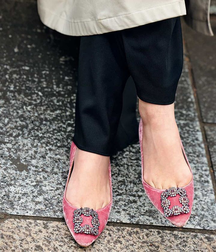 銀座勤務ということもあり、常にきちんと感を。大の靴好きで出番の多いぺたんこには投資。地味色に春らしいピンクのマノロを投入。