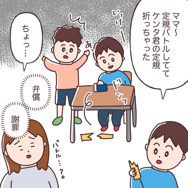 こんなこともありました。傘に限らず、とにかくよくモノを壊す息子。「ママ~、定規バトルしててケンタくんの定規折っちゃった」と言われた時は「ケンタくんの親御さんに謝罪しなきゃ!定規も弁償しなきゃ!」と慌てました。自分のものならまだしも、お友達のモノを壊すのはやめて・・と心底思った出来事です。モノを大切にしようねって常々言ってるんですけどね・・。