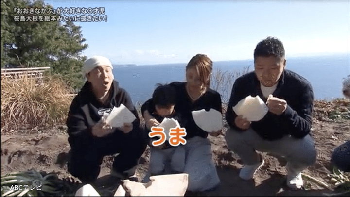 収穫したての桜島大根をみんなでナマでいただいて、調査は終了。3歳児の願いを叶えたこのVTRは、3月27日に放送された『探偵!ナイトスクープ』で公開された。