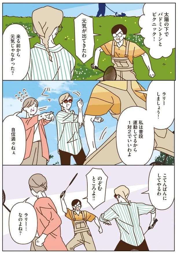 3. お疲れ気味のマダムたち。元気を出すためにGWは青空の下で元気にバドミントン!/マダムたちのルームシェア4㉟