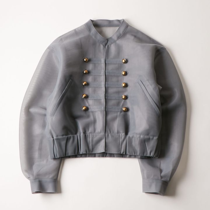 ナポレオンジャケット風デザインを、シアー素材で春仕様にシフトチェンジ。ショート丈&ボリューム袖を生かして、ミニスカートやショーツをあわせると好バランス。