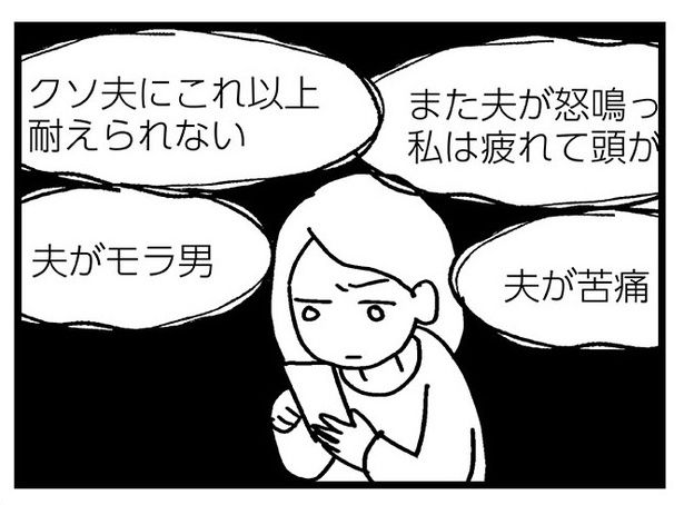 草餅:夫の死を本気で願っていた方から「夫に死んでほしいと本気で思っている自分はおかしいのではないか、誰からも理解されないし……と悩んでいたけど、自分だけではないと思えた。『好きで結婚した配偶者の死を願うなんて』と思う人やモラハラに理解のない人にこそ読んでみてほしい」という声をいただけました。嬉しかったですね。