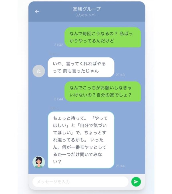 1.言いづらいことを、やわらかく整える 送りたい文章をそのまま入力することで、きつく聞こえにくい表現や、角が立ちにくい言い回しに整えます。夫婦や家族との会話だけでなく、部下へのフィードバック、取引先への催促、断りの連絡などにも活用できます。