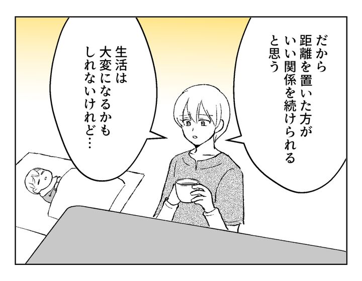 フミカさん、我慢し続けて関係が破綻する前に気がつけてよかったですね。いくらいい人だったり人間的に尊敬していたりする相手だったとしても、一緒に生活するとなると話は別。今回のように、どうしても生理的に受け入れられないものが出てくる場合もあるでしょう。いい関係を続けていきたいからこそ必要になる距離感もあると思います。自分の気持ちが整理できたいいタイミングでお義母さんから電話がきましたが、果たしてお義母さんは怒っていないでしょうか……?