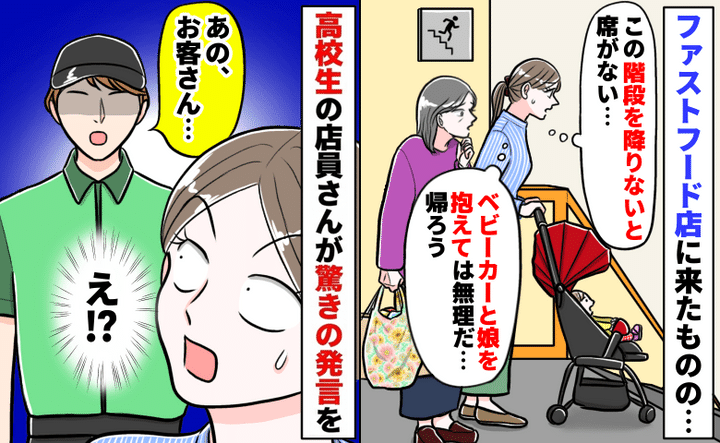 階段しかない!ファストフード店前でベビーカーと娘を抱え途方に暮れると…高校生店員が予想外の行動に