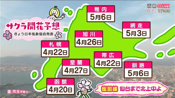 函館は薄い雲がかかっていますが、日ざしは届いています。新年度スタートは春の陽気になりました。ここでさらに、春の話題。きょう1日(水)日本気象協会から最新のサクラ開花予想が発表されました。
