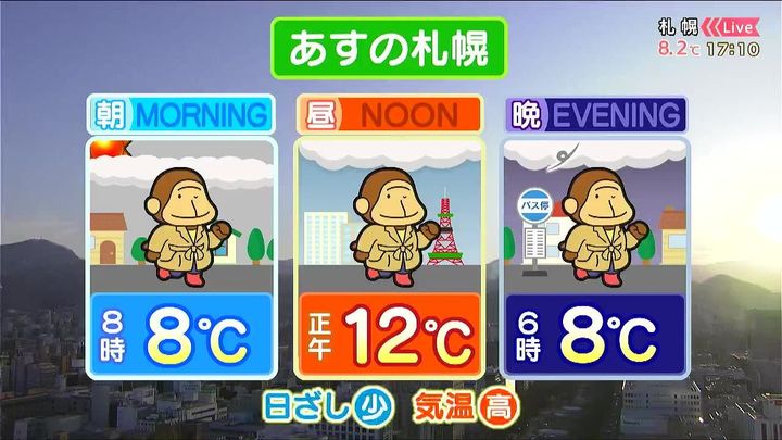 あす2日(木)の札幌です!朝昼晩の天気をもんすけでお伝えします!