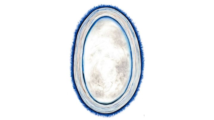 自分自身の心と向き合って現在や過去、未来を投影する鏡。何かを包み込むものとして描かれた楕円形の見方は自由。見る人のストーリーを映し出す。