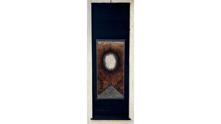 拳銃を溶かして作られた特殊インクを使用。ボストンでの展覧会に合わせ、表装や文化財修復を手掛ける「清華堂」が軸装。