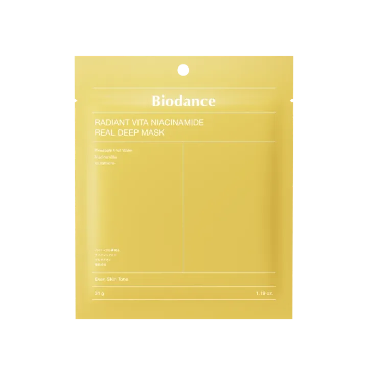 くすみや質感を整えてワントーン明るい肌へと導きます。ラディアントビタナイアシンアミドリアルディープマスク〈黄/4枚入り〉 2,640円